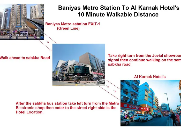 Der Zugang zu öffentlichen Verkehrsmitteln ist im Al Karnak Hotel sehr einfach, da das Hotel direkt mit einer U-Bahn-Station verbunden ist. Zusätzlich sorgt ein kostenloser Strand-Shuttle für einen unkomplizierten Transfer zu den schönsten Stränden in der Umgebung.